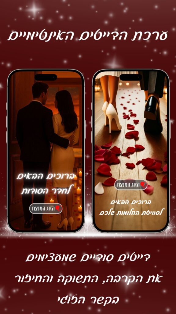 לא עוד “שיחה על יומיום” ולא עוד “מה אוכלים מחר”, אלא דייט אינטימי שמחזיר אתכם אחד אל השנייה – עם מבטים, מגע מדויק, חיוך של קרבה, ורגעים שתזכרו לתמיד.